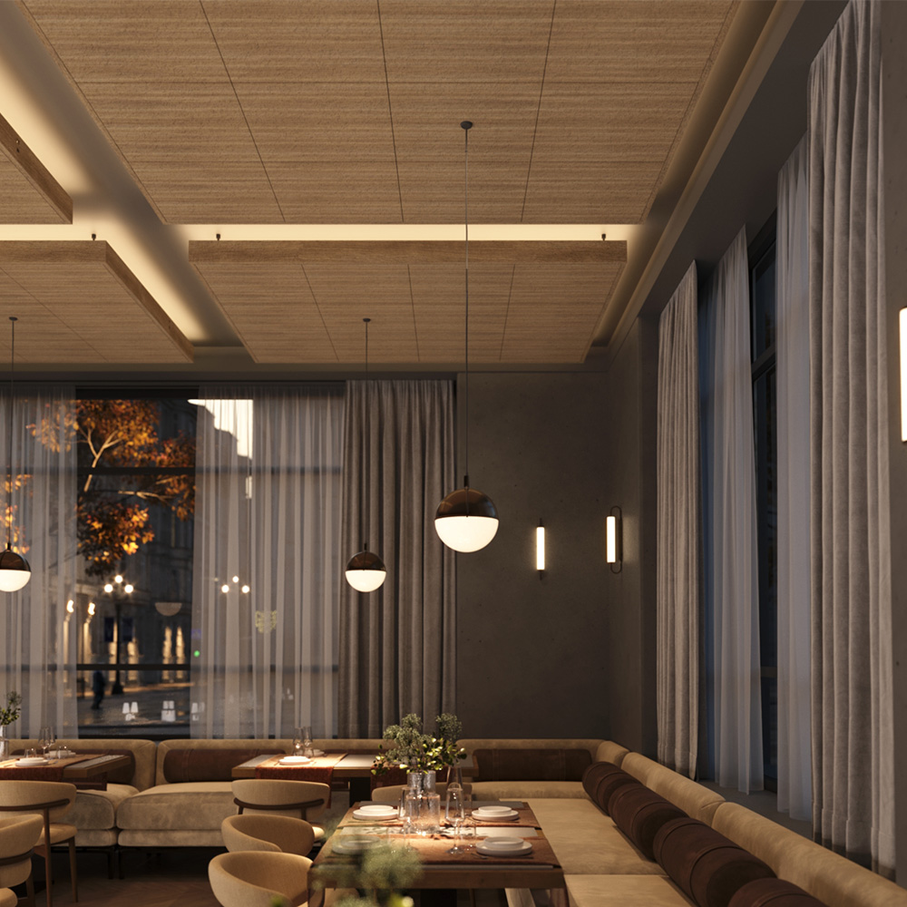 Fresco is engineered to reduce reverberation and control noise, improving clarity and comfort in shared environments. It enhances how spaces sound as much as they look.