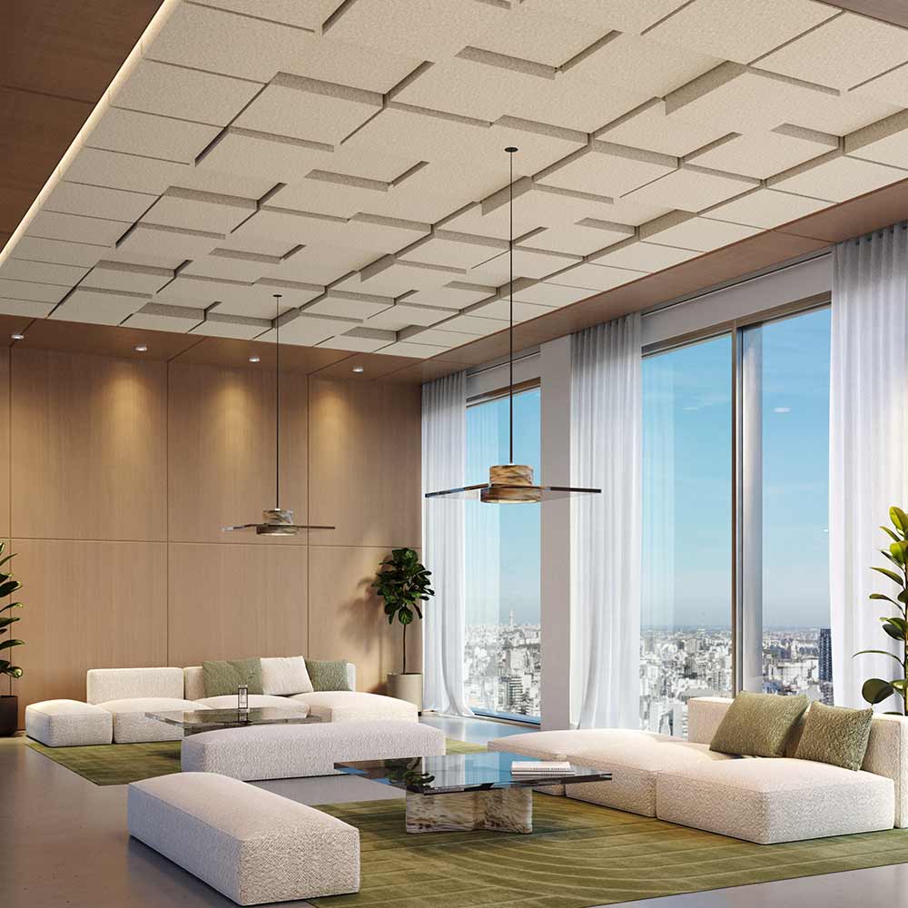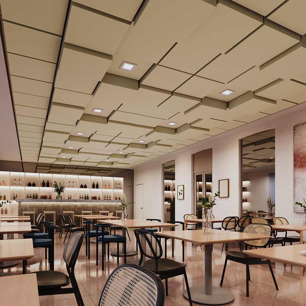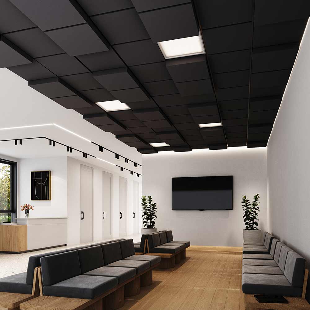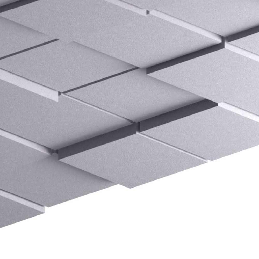 Kubica by EzoBord is a revolutionary ceiling tile solution engineered for exceptional acoustic performance and aesthetics. With various depths and configurations, it offers tailored sound absorption and visual impact. Designed to fit standard T-bar 15/16″ ceiling grids (2’x2′), Kubica ensures easy installation for contractors and designers.