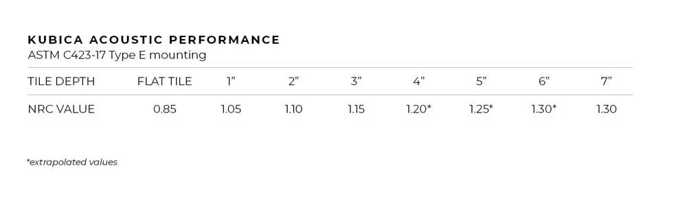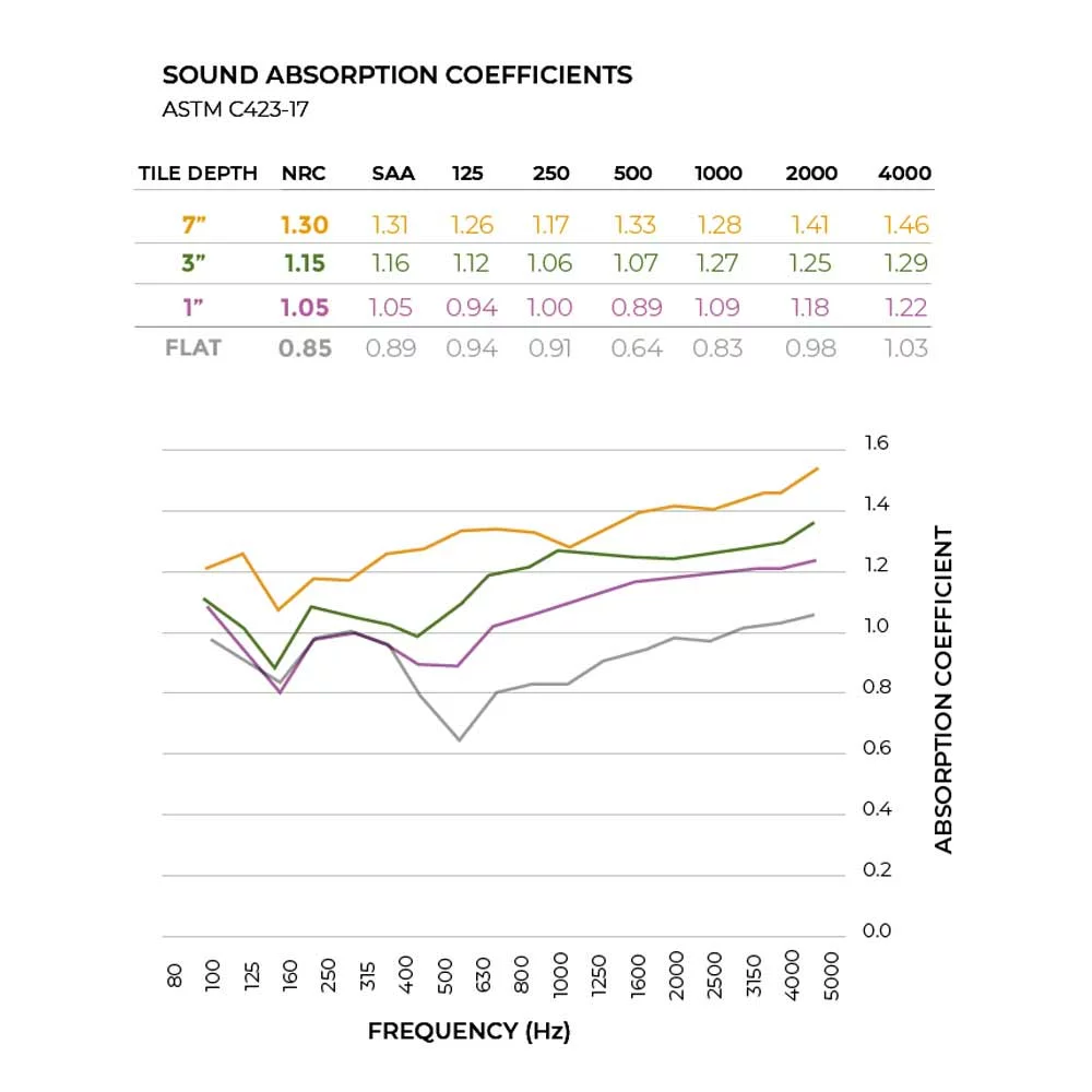 Noise Reduction Coefficient: 0.9 to 1.3 in accordance with ASTM C423 Type “E”.
