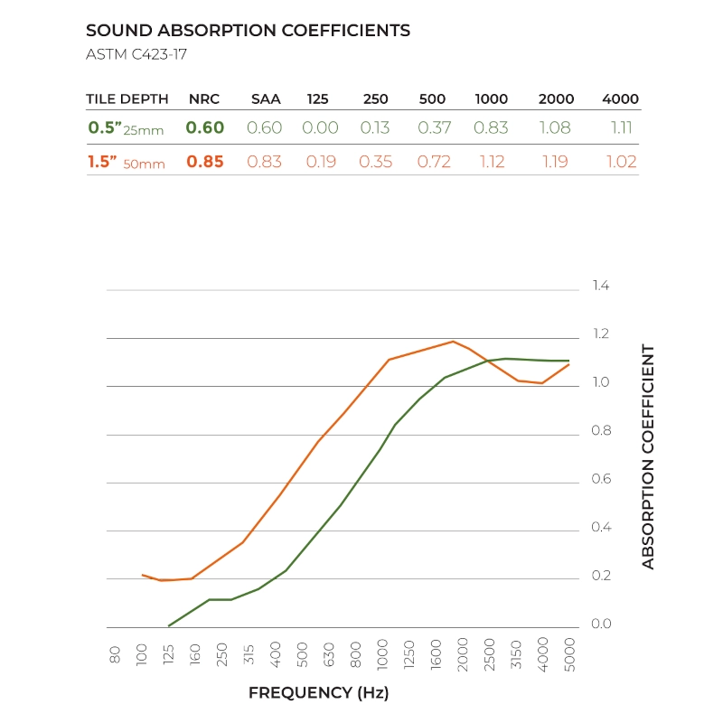 | Sound Absorption Test(ASTM C423-7) Rubik 1,5in Tile Depth |