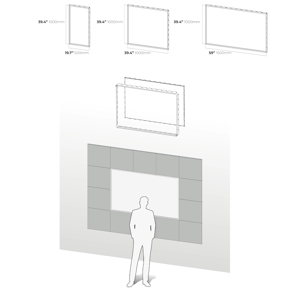 Rubik’s flat tiles open up new possibilities for transforming acoustic surfaces into large-scale murals, graphic wall coverings, and custom art pieces. The modular grid frame system can be scaled both horizontally and vertically, allowing for seamless expansions across walls of any size. Whether designing with a series of small, repeatable tiles or specifying full-sheet panels for a bold, continuous statement, Rubik provides the flexibility to bring any visual concept to life. With high-resolution printing capabilities and precise material control, it’s an ideal solution for integrating pattern, branding, or visual texture into acoustically functional surfaces.